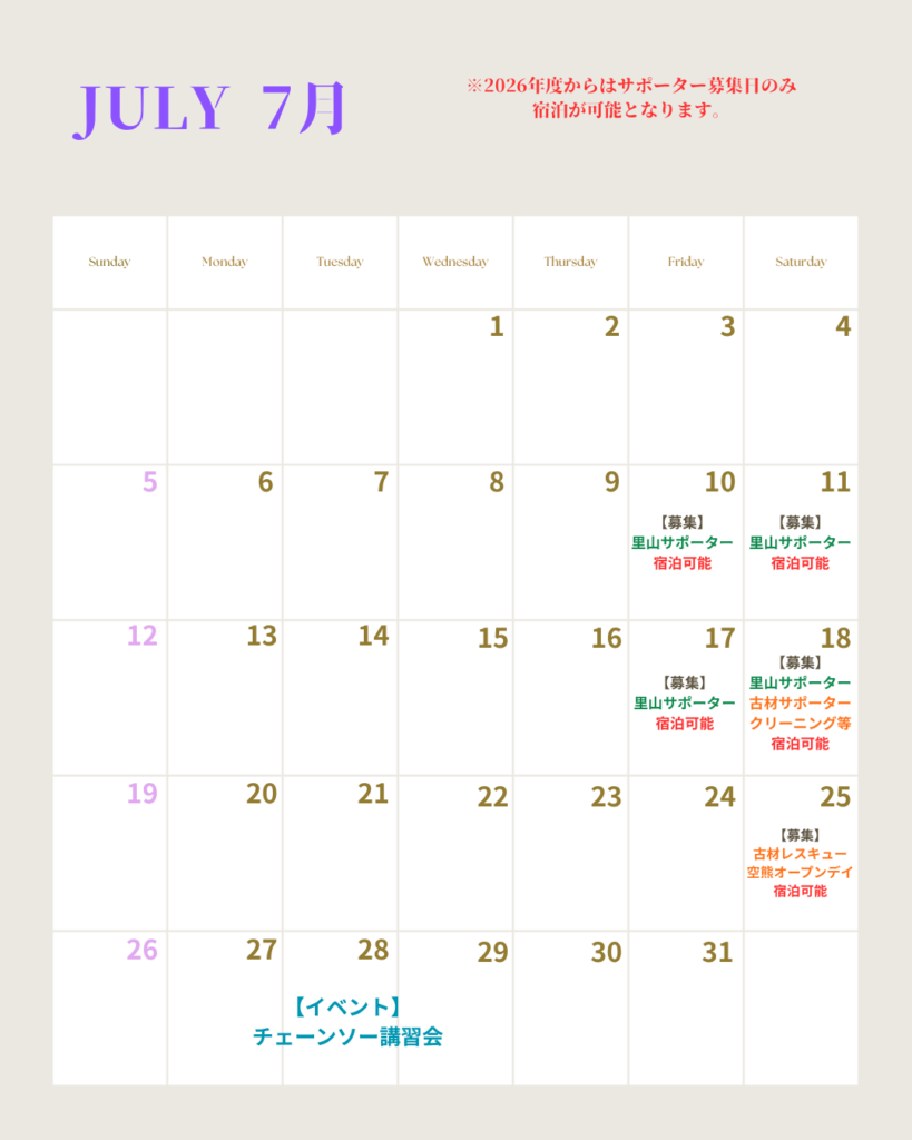 5〜7月のサポーターズ活動日をアップしました!
